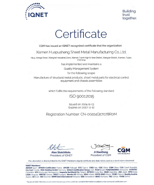 Xiamen Huapusheng Sheet Metal Manufacturing Co., Ltd. specialiserar sig på kraftstyrningsutrustning och precisionsplåttillverkning. Med över 200 anställda, 36 ingenjörer och 32 patent betjänar vi globala kunder inom kraft-, kommunikations- och industrisektorerna.